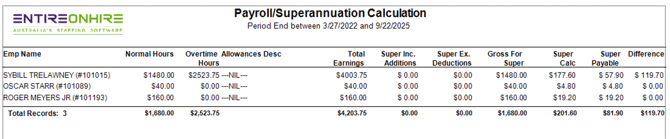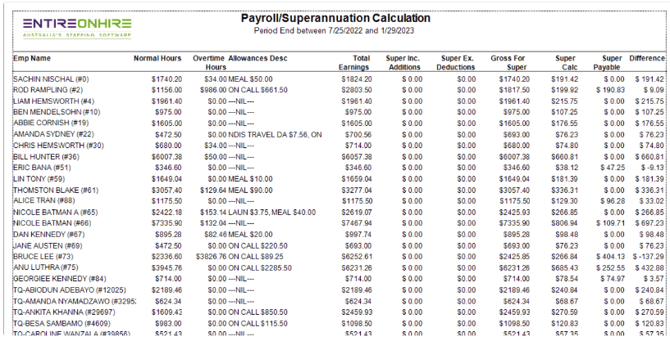 Report Name: Payroll/Superannuation Calculation