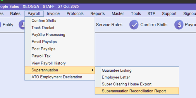 Payroll > Superannuation > Superannuation Reconciliation Report