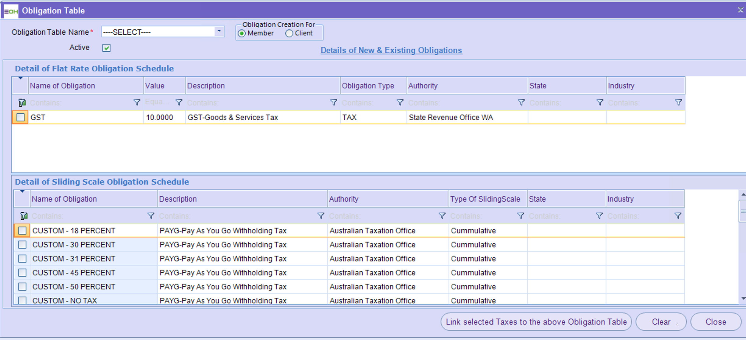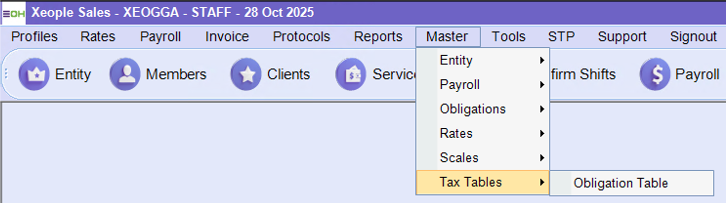 October 27, 2025 Tax Tables Obligation Table This is where all your TFN scales are stored and created. You can see them split into Flat and Sliding Scale.