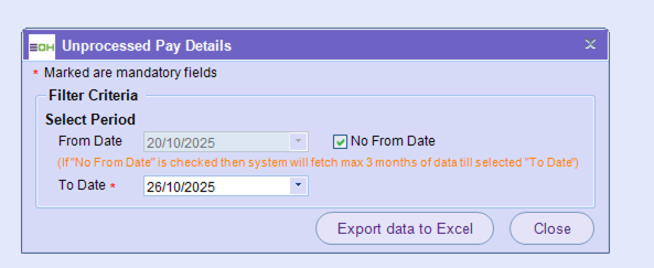 | No From Date | If ticked, the system will automatically pull up to the last 3 months of data ending at the selected “To Date.” |