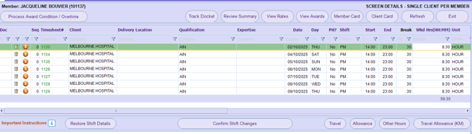 (a) Select the shift from the Confirm Shifts Listing Screen and click on the ‘Review & Validate Shift’ button to open the Confirm Shifts Detail Screen.