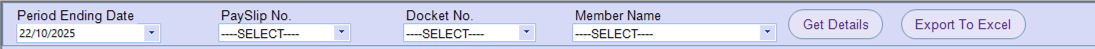 First, select your period ending date. If you are searching for a specific payslip or docket, you can fill in those fields.