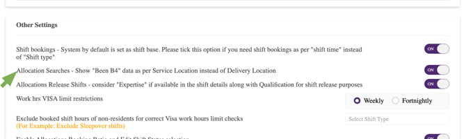 If you have some members that are not appearing in the been B4 searches for a delivery location please ensure you have your 'Allocation Searches - Show "Been B4" data as per Service Location instead of Delivery Location Toggle' switched to ON in the settings.