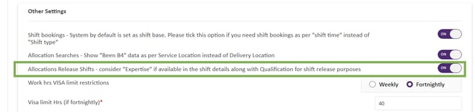 Members will only see released shifts where their expertise matches the expertise specified in the shift. - If this setting is OFF: