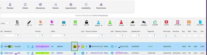 The Allocations padlock changes to orange when a document is uploaded directly to a specific shift.