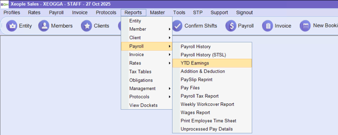 Reports > Payroll > YTD Earning