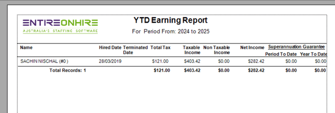 | Superannuation Guarantee – Period To Date | The total superannuation contributions accrued for the specific period selected. |
